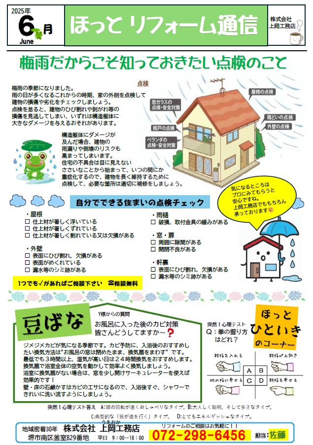 ◎リフォーム通信 6月号 2025年6月10日 最終更新日時 : 2025年7月8日 ueokakoumuten 6月号をポストにお届け中です。毎日忙しいですが、" ほっと ” ひといきつきませんか (^^)