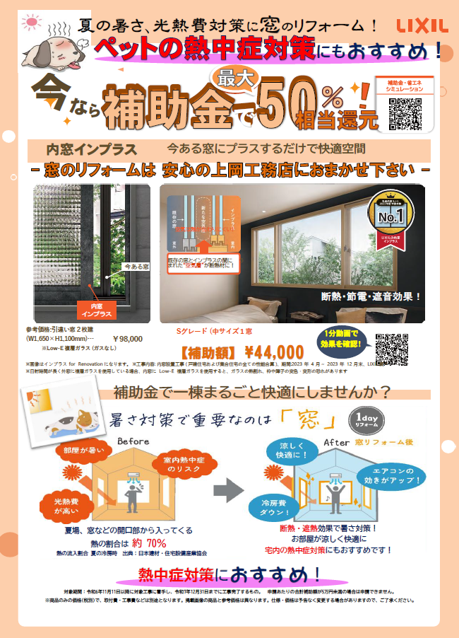 ◎省エネ補助金で節電対策 2025年6月13日 最終更新日時 : 2025年6月30日 ueokakoumuten 2025年も住宅省エネキャンペーンの補助金があります。上岡工務店でも申請可能です!夏の節電対策に窓のリフォームはオススメです!!